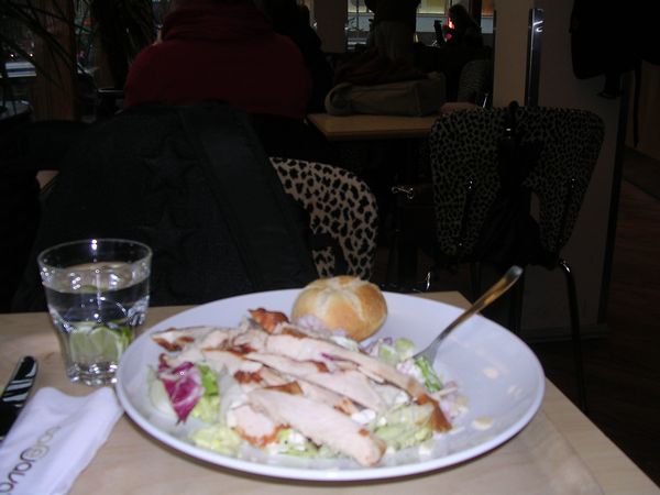 Here is a typical Finnish meal. It is a salad with chicken strips. It was rather
